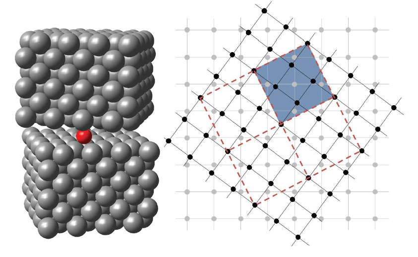 MedeA Interface Builder能够直接由两个表面模型通过设置界面匹配度等相关参数,自行将两个表面扩建超胞、旋转或平移、合并为界面模型。Interface Builder会搜索出所有可能出现的界面模型,同时允许两个表面晶格参数不匹配。MedeA Interface Builder能够创建位错界面,也能创建共格或半共格晶界,并允许在创建的界面模型基础上进一步编辑,如引入缺陷,取代掺杂、间隙掺杂等。