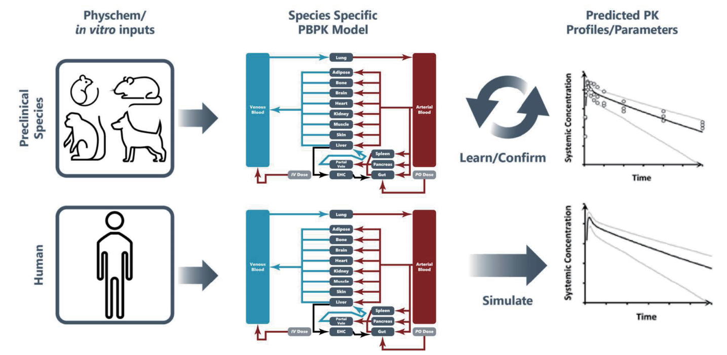 • 可通过健康志愿者,小鼠,大鼠,犬和猴的PBPK模型来预测早期药物研发结果