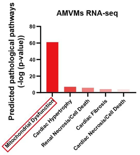 研究人员分别对分离的大细胞外囊泡进行miRNA测序,对分离的成年小鼠心室肌细胞进行RNA测序,对来自RNA-Seq的1029个差异表达基因进行IPA分析,结果显示这些基因富集于代谢疾病,最突出的是线粒体氧化磷酸化。IPA分析显示Rictor(以miRNA-326-3p为靶标)是哺乳动物雷帕霉素靶复合物2(mTORC2)的必需蛋白,很可能是链脲佐菌素心肌病理学的上游调节因子。