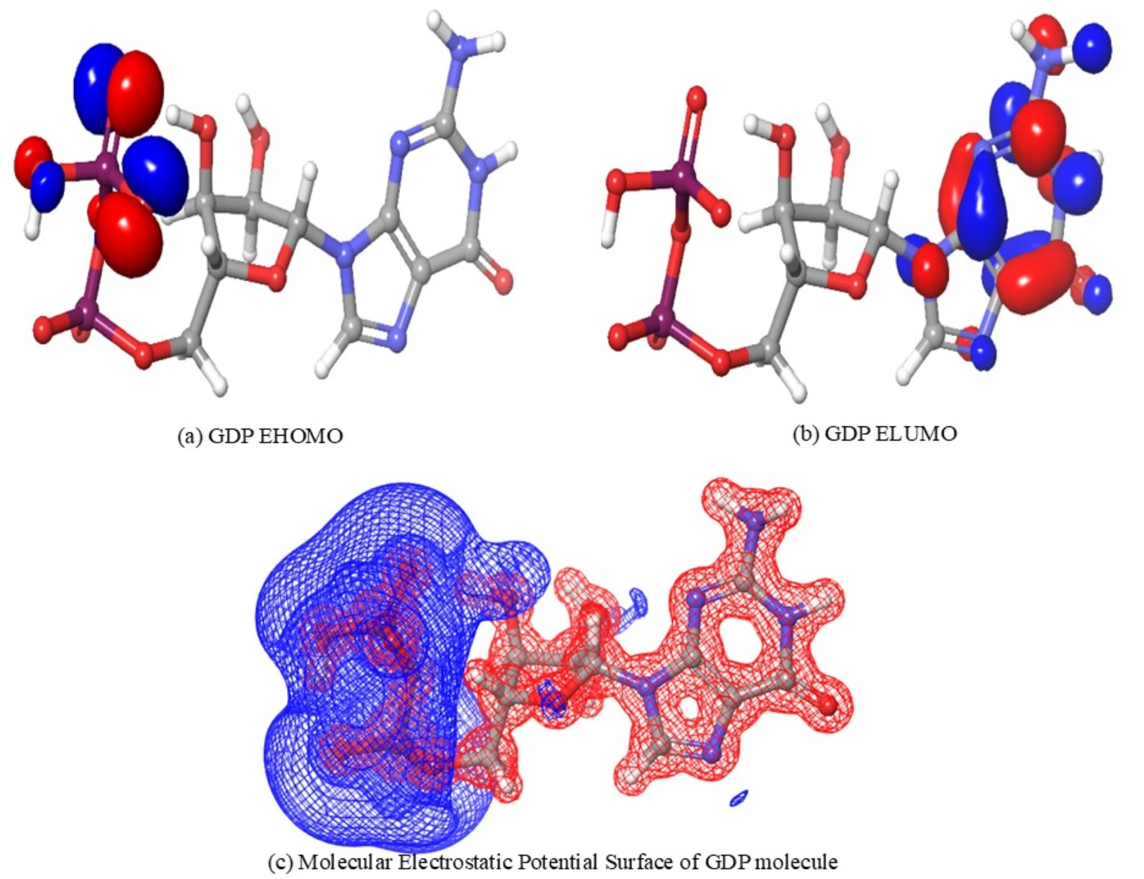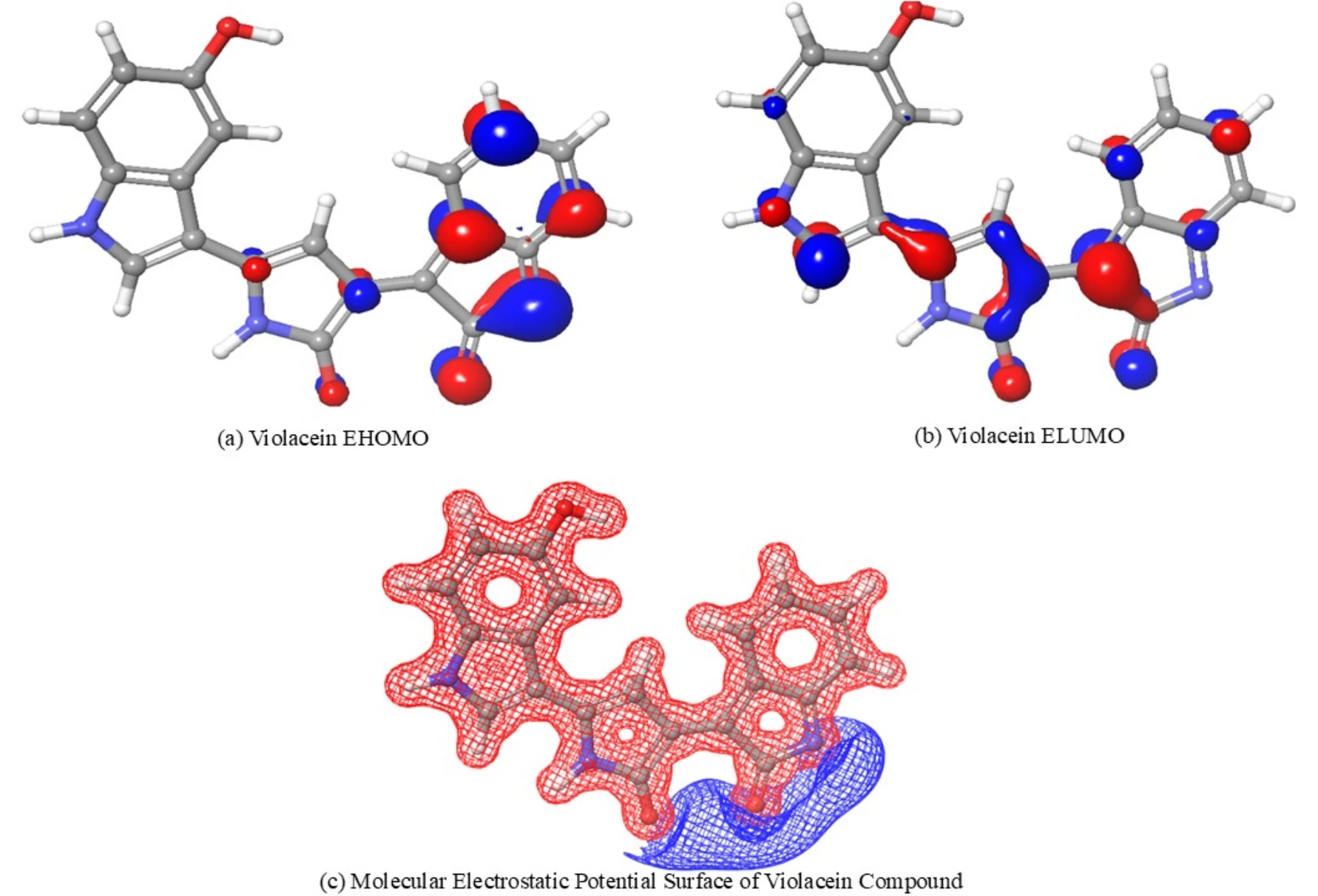 图注:HOMO、LUMO和分子静电势表面的3D图