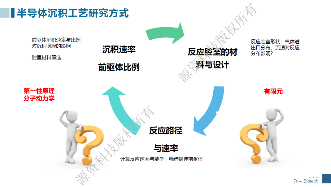 沉积薄膜生长过程复杂,主要涉及微观尺度下原子/分子在衬底表面的吸附、反应与薄膜生长动力,另外还包含宏观的气体流动、传质与传热过程。那么,如何从微观的原子尺度、宏观的有限元尺度以及两者耦合对沉积工艺进行仿真,优化工艺参数与设备?