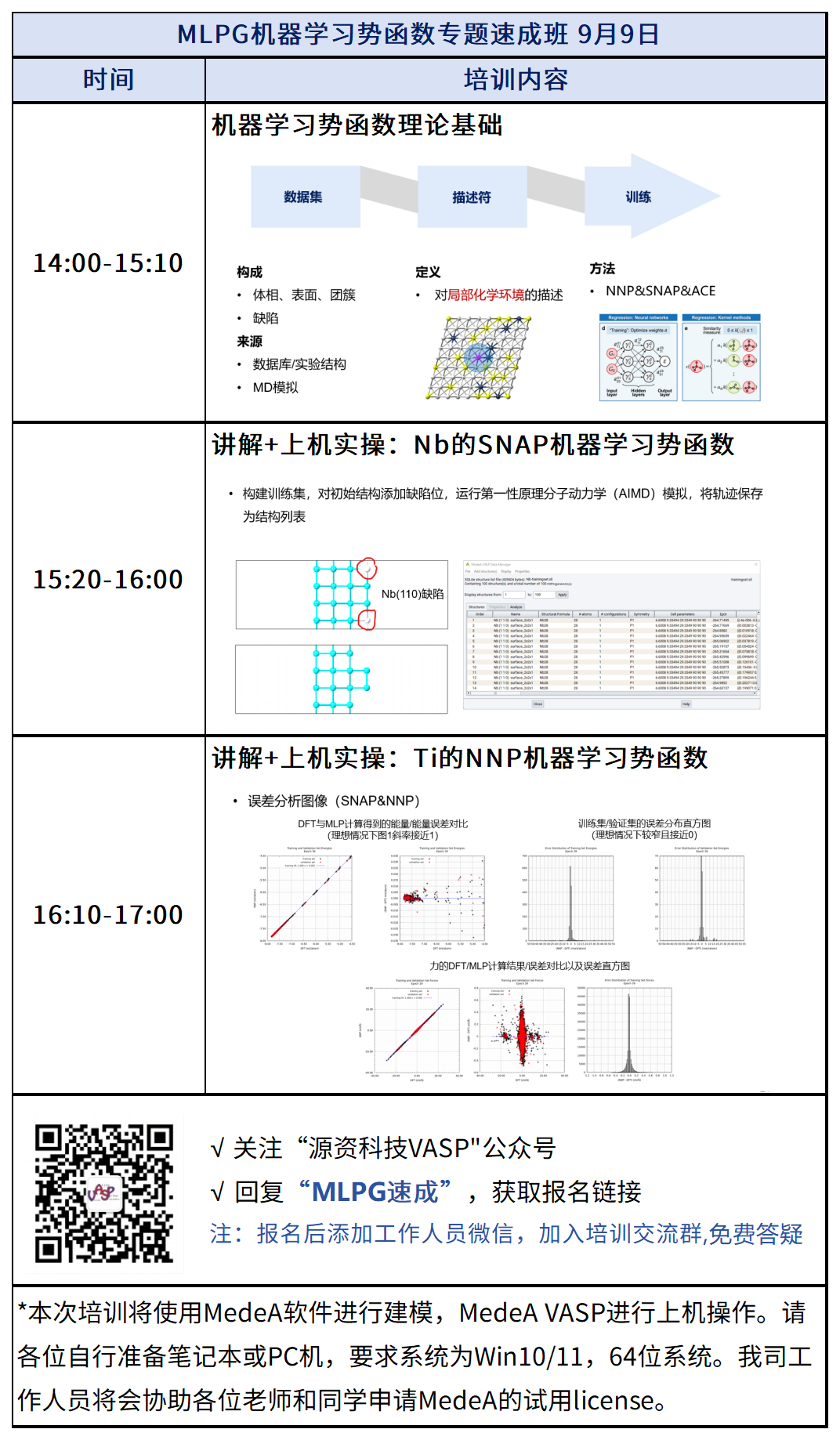 目前训练机器学习势函数用于跨尺度计算已成为材料领域热点之一。基于此,源资科技将于9月9日开展LAMMPS机器学习势函数训练专题速成班,演示如何采用MedeA“一键”训练机器学习势函数,告别繁琐复杂的操作。全程免费,包含授课及上机指导!