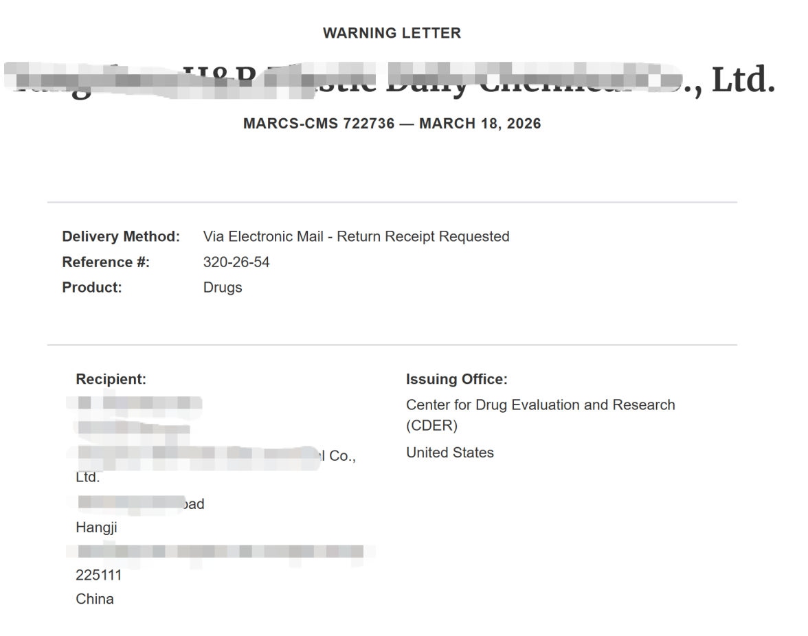 做医药代工、打算出海的企业,一定要重点关注这篇!今日,FDA公开了今年首封针对中国企业的警告信,涉事的是国内一家OTC药品代工厂(下称“某企业”)。这封警告信里暴露的合规漏洞,很多中企都在踩,今天就结合FDA公开信息,把警告信的来龙去脉、核心缺陷拆透,帮大家自查避坑,避免重蹈覆辙。