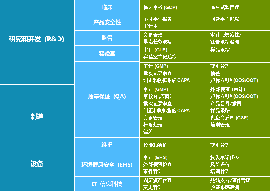 TrackWise产品应用范围十分广泛,只要企业有需要受到质量监管的质量流程都可以在此平台上灵活搭建(无需增加额外软件成本)。