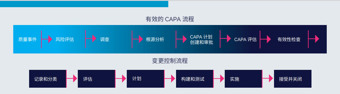 记录并管理每个部门从初始请求到实施的流程变更,确保获得监管部门批准。通过实施与其他质量管理系统组件集成的且具有凝聚力的企业变更管理程序,提高效率、加强控制并减少缺陷。