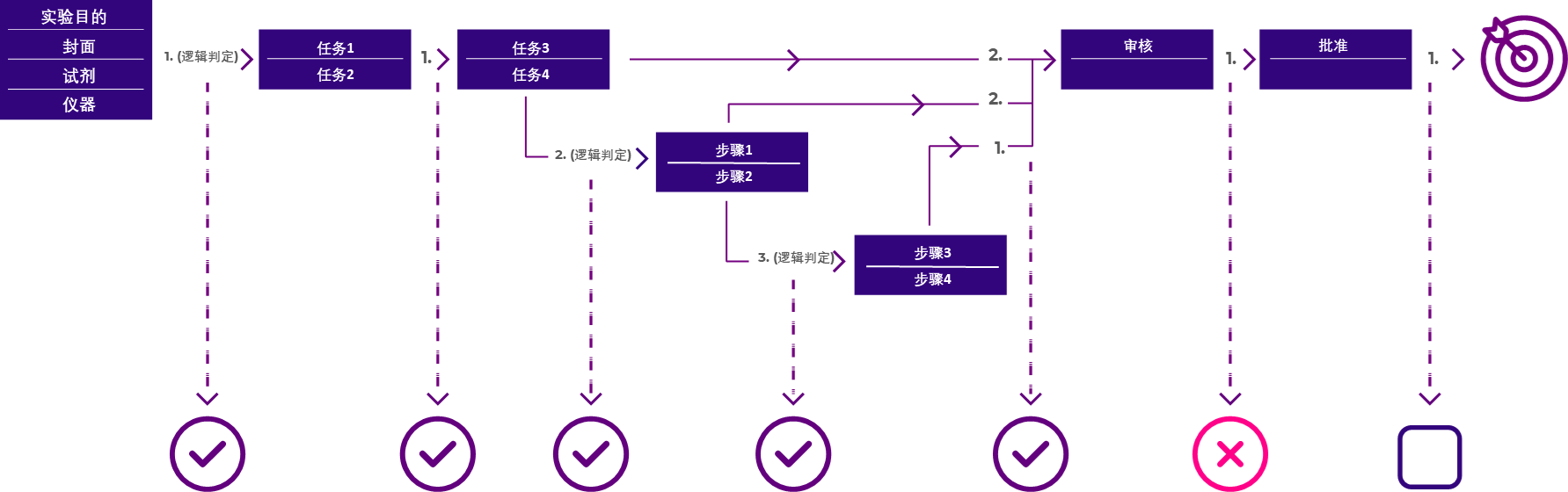 系统基于逻辑判定,使整个实验严格按照SOP的要求执行,包括实验步骤的前后顺序和每个步骤的参数要求,系统均能智能化辅助实验人员,以满足合规实验室的要求。