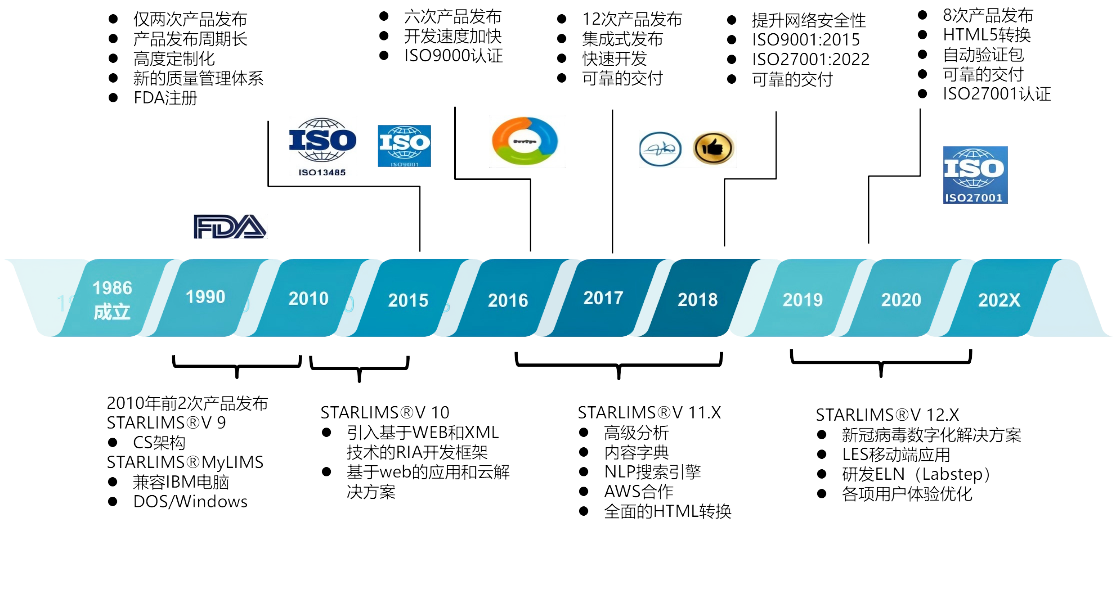 STARLIMS创建于1986年,是全球创建较早的LIMS品牌,适用行业包括制药和生物技术、质量制造、合同研究组织(CRO)、合同制造组织(CMO)、分子诊断、生物储存库和生物样本库、临床研究、食品和饮料、化学、石化和炼油、公共卫生、法医和环境科学。STARLIMS在全球有1000多家用户,有2000多家实验室在使用,产品遍布近100个国家。STARLIMS是全球较早将CS架构转变成BS架构的LIMS系统,支持用户使用任何终端,任何浏览器访问系统,满足了更便捷化的系统登录和友好的使用需求。同时,产品一直致力于质量体系认证和新技术的更迭。产品符合ISO9001,ISO27001等体系,同时支持云端部署,本地部署和混合部署,同时,产品加入了AI辅助,智能语音,大数据统计功能,基于此,STARLIMS的使用便捷性,友好度以及数据分析统计能力更加强大。